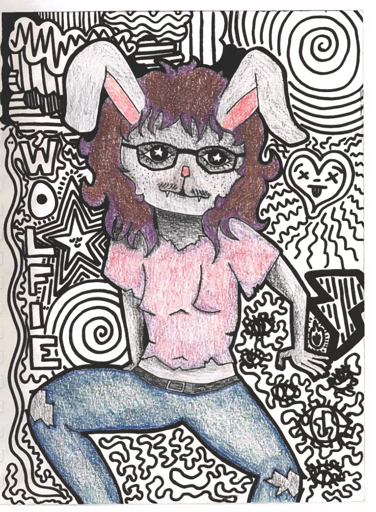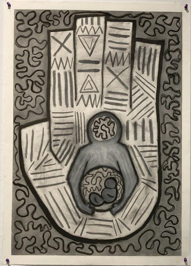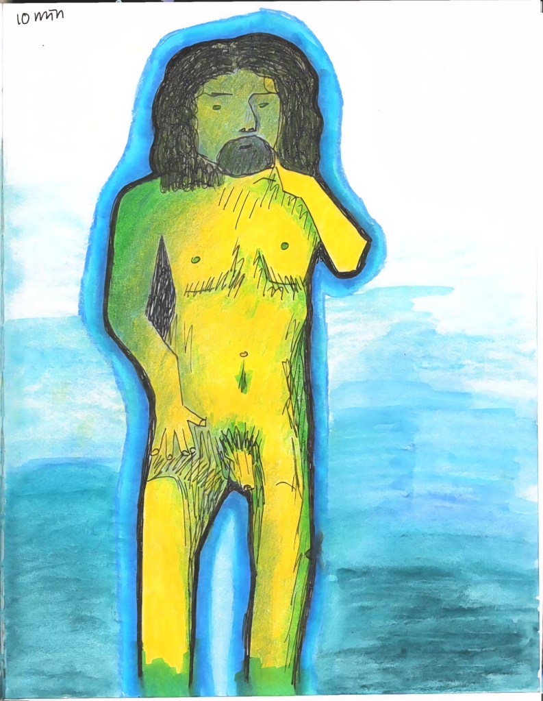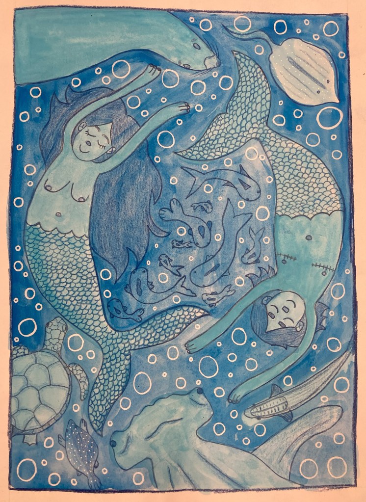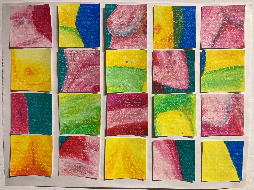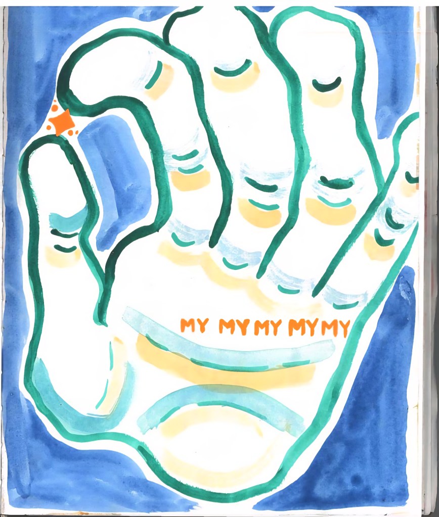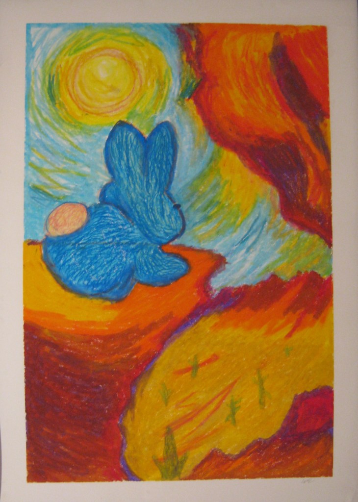 Gouache, oil pastel, coloured pencil on watercolour paper