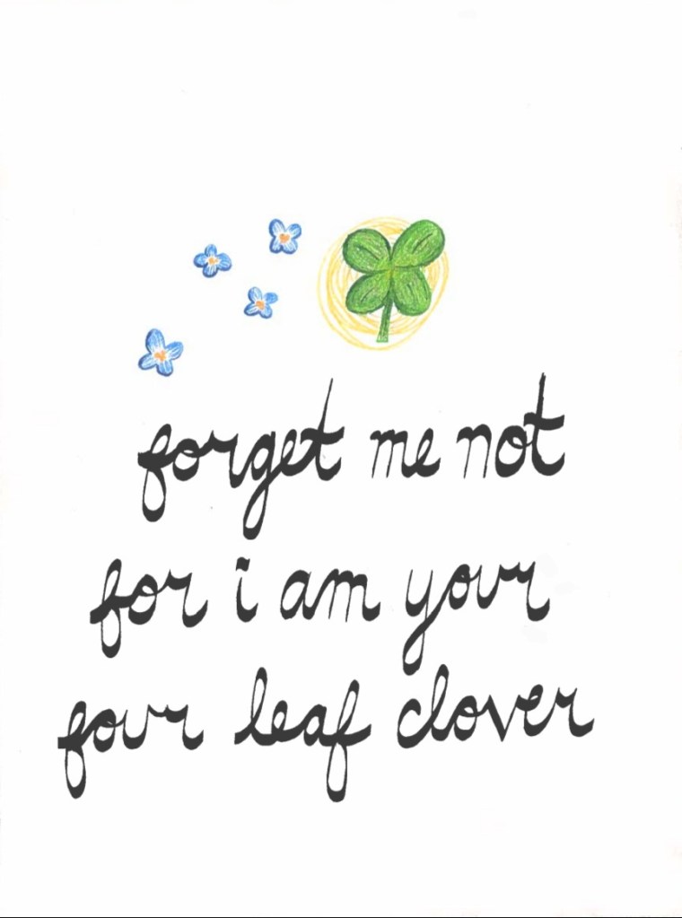 FORGET ME NOT, FOR I AM YOUR FOUR LEAF CLOVER
